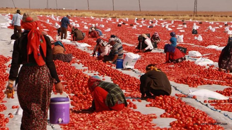 Diyarbakır'dan Avrupa'ya lezzet yolculuğu mesaisi başladı bu lezzet yolculuğu aslında Nisan ayında başlıyor bu yolculukta kadın elinin emeginin alın terinin en cok aktığı bir yolculuktur fidelerin dikilmesiyle başlayan bu yolculukta kurutulmasina kadar uzanan uzun ve meşakkatli bir zaman sürecidir kadın ve çocuklarında mevsimlik işçi olarak çalıştığı bu yorucu süreç aile bütçesine katkı sunmak için 45 derecenin üzerinde olan hava sıcaklığında çalışmak zorunda kalan bu yoksul insanların farklı hikayelerle dolu bir süreçle başlıyor. özellikle Ağustos ayında başlayan bu kurutma işi yaklaşık bir ay sürüyor burada kurutulduktan sonra fabrikalarda yapılan işlemlerden sonra Avrupa'ya ithal ediliyor. .özellikle, pizada kullanilan bu domatesler venedikte pizza yiyen birisinin bu kadar bir emeğin olduğunu ve bu emeğin Diyarbakır'dan emekçi kadınların alinteri ile yapıldığını anlayacağını sanmıyorum işin en garip tarafı ise çalışan bu kadın ve çocuklarınin bazılarının hiç pizza yemedigidir lezzet yolculuğunun başından beri emegi geçen bu mevsimlik işçilerin de bir gün pizza yemeleri temennisiyle Diyarbakır'daki pizza işletmecilerine bir teklifim var bütün pizza işletmecileri olarak birleşin ve burdaki emekçi kardeslerimize pizza yedirelim.